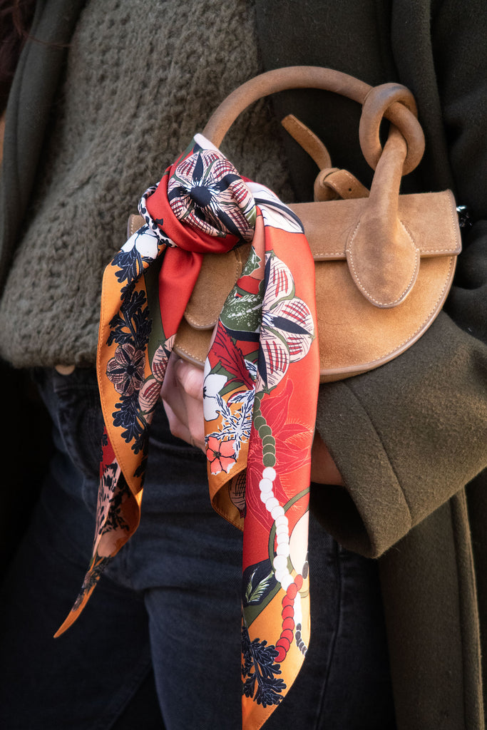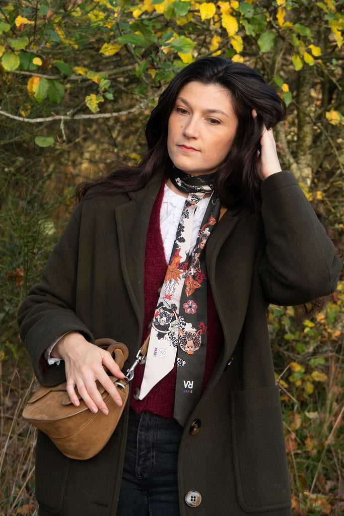 Nous concevons des accessoires femme, durables et tendances pour limiter l'achat de vêtements. Un accessoire peut complètement renouveler votre garde-robe, donner du peps à votre tenue et être porté de multiples façons. Un accessoire de qualité, comme un foulard en carré de soie, se transmet de génération en génération. Il est donc bien plus durable qu'un vêtement qui a souvent une certaine durée de vie limitée.