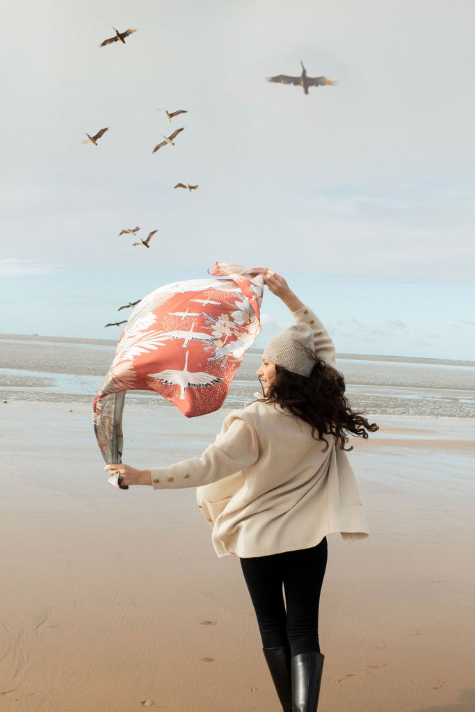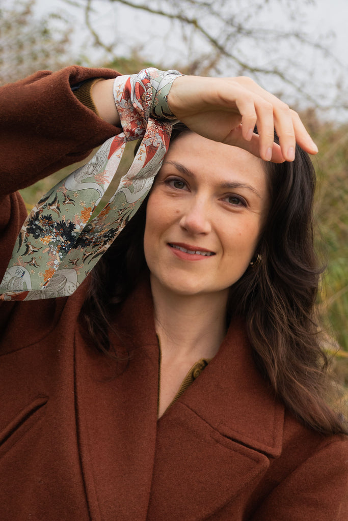 Nous concevons des accessoires femme, durables et tendances pour limiter l'achat de vêtements. Un accessoire peut complètement renouveler votre garde-robe, donner du peps à votre tenue et être porté de multiples façons. Un accessoire de qualité, comme un foulard en carré de soie, se transmet de génération en génération. Il est donc bien plus durable qu'un vêtement qui a souvent une certaine durée de vie limitée.